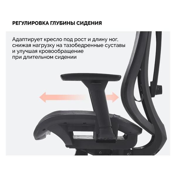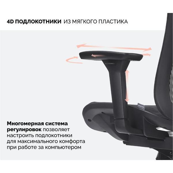 Для дополнительного комфорта предусмотрена регулировка глубины сидения, 3D-подголовник с гибкой настройкой и 4D-подлокотники, которые можно отрегулировать по высоте, выезду вперед-назад, глубине и углу наклона. Такая многомерная система позволяет найти максимально удобное положение рук при работе за компьютером.