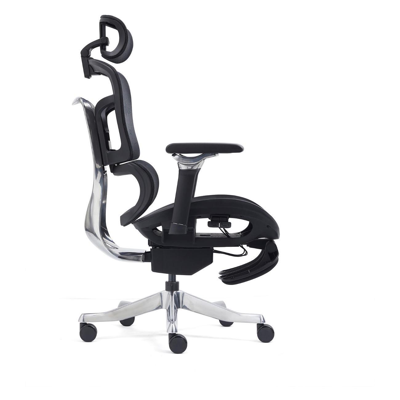 Инновационные 6D-подлокотники позволяют максимально точно подобрать удобное положение рук даже в лежачем положении, а 3D-подголовник гибко настраивается для оптимальной поддержки шеи. Для полноценного отдыха кресло имеет выдвижную подставку для ног, которая превращает рабочее место в комфортную зону релаксации.