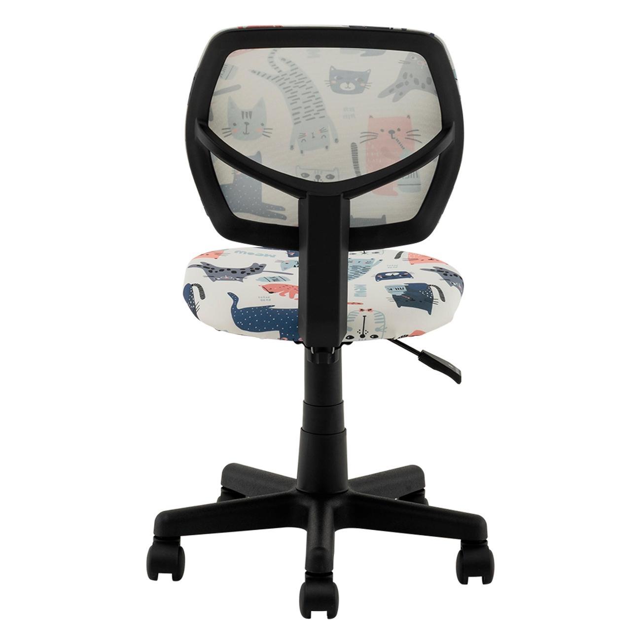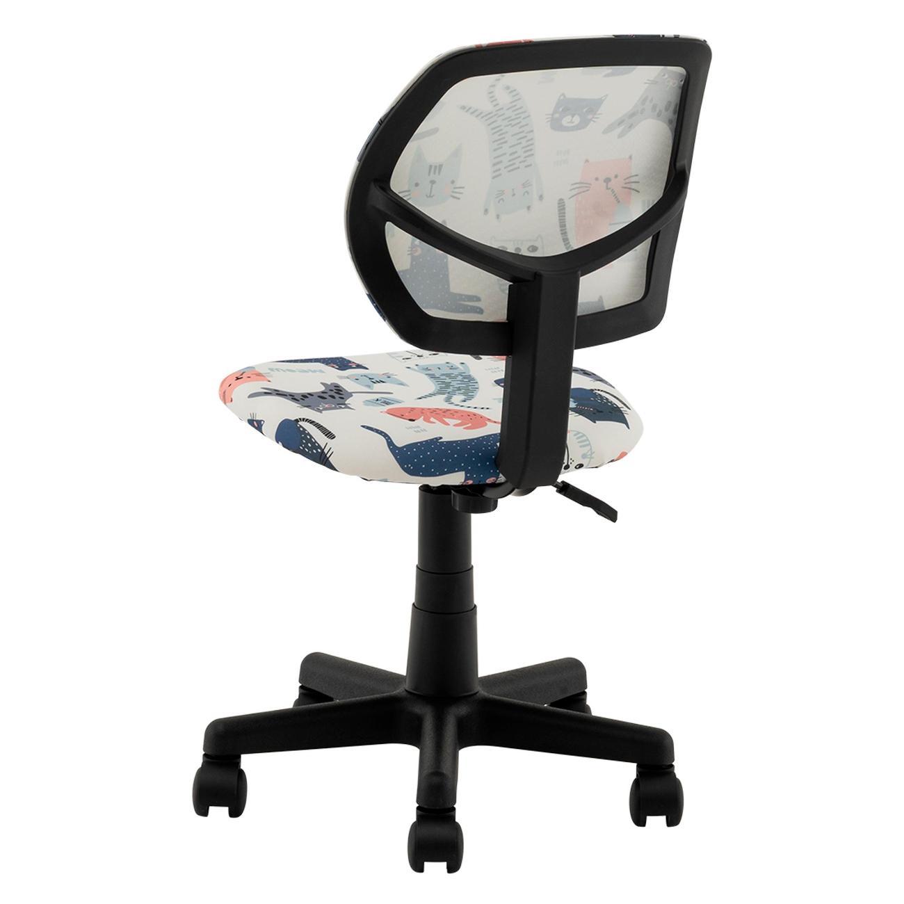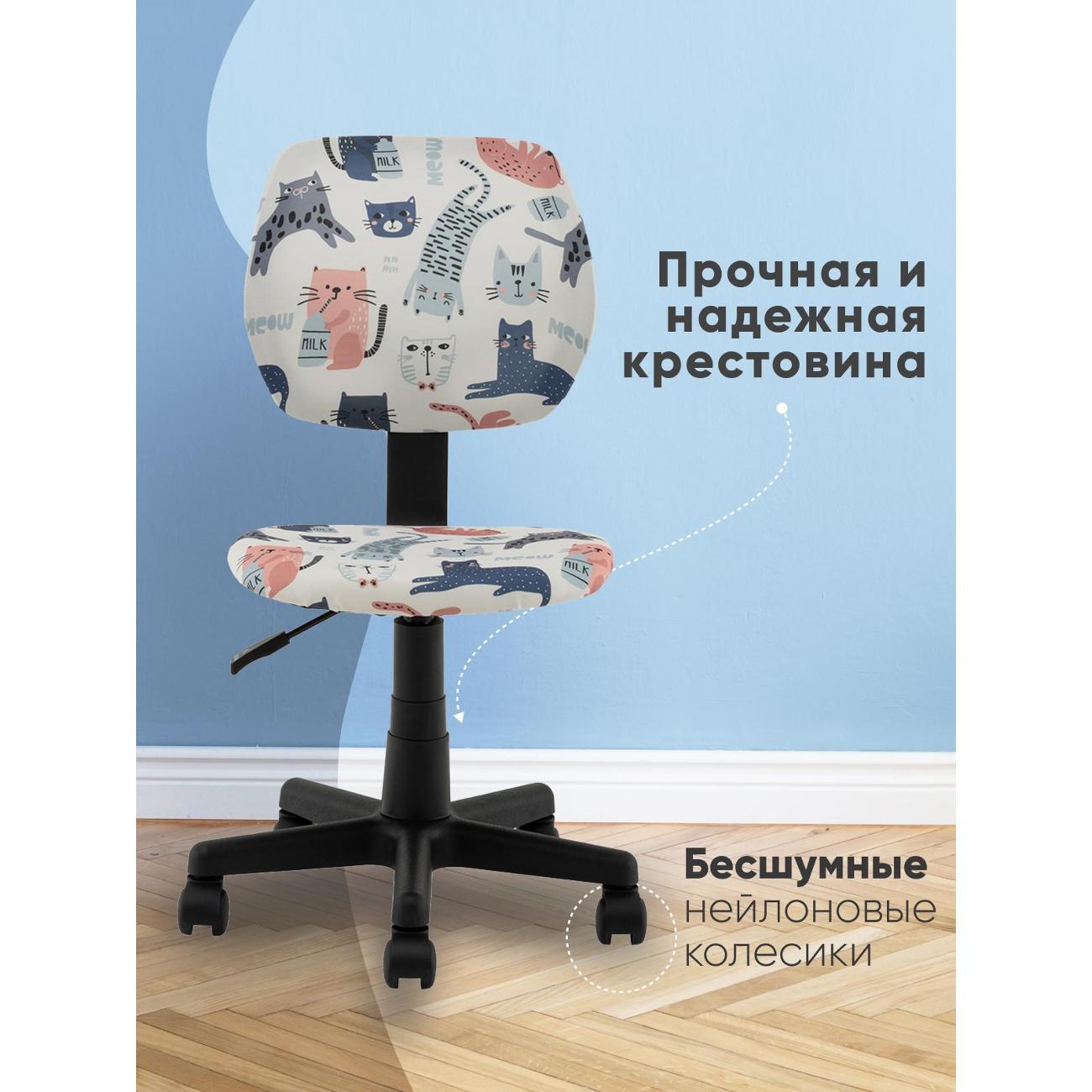 Кресло оснащено пружинно-винтовым механизмом качания. Подлокотники и подголовник не предусмотрены. Крестовина пластиковая, ролики из нейлона. Радиус пятилучья — 24,5 см.