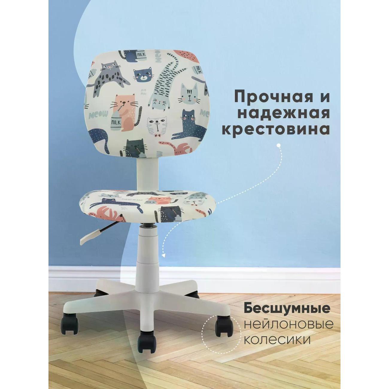Пружинно-винтовой механизм качания. Подлокотники и подголовник отсутствуют. Крестовина пластиковая, ролики из нейлона. Радиус пятилучья — 24,5 см.
