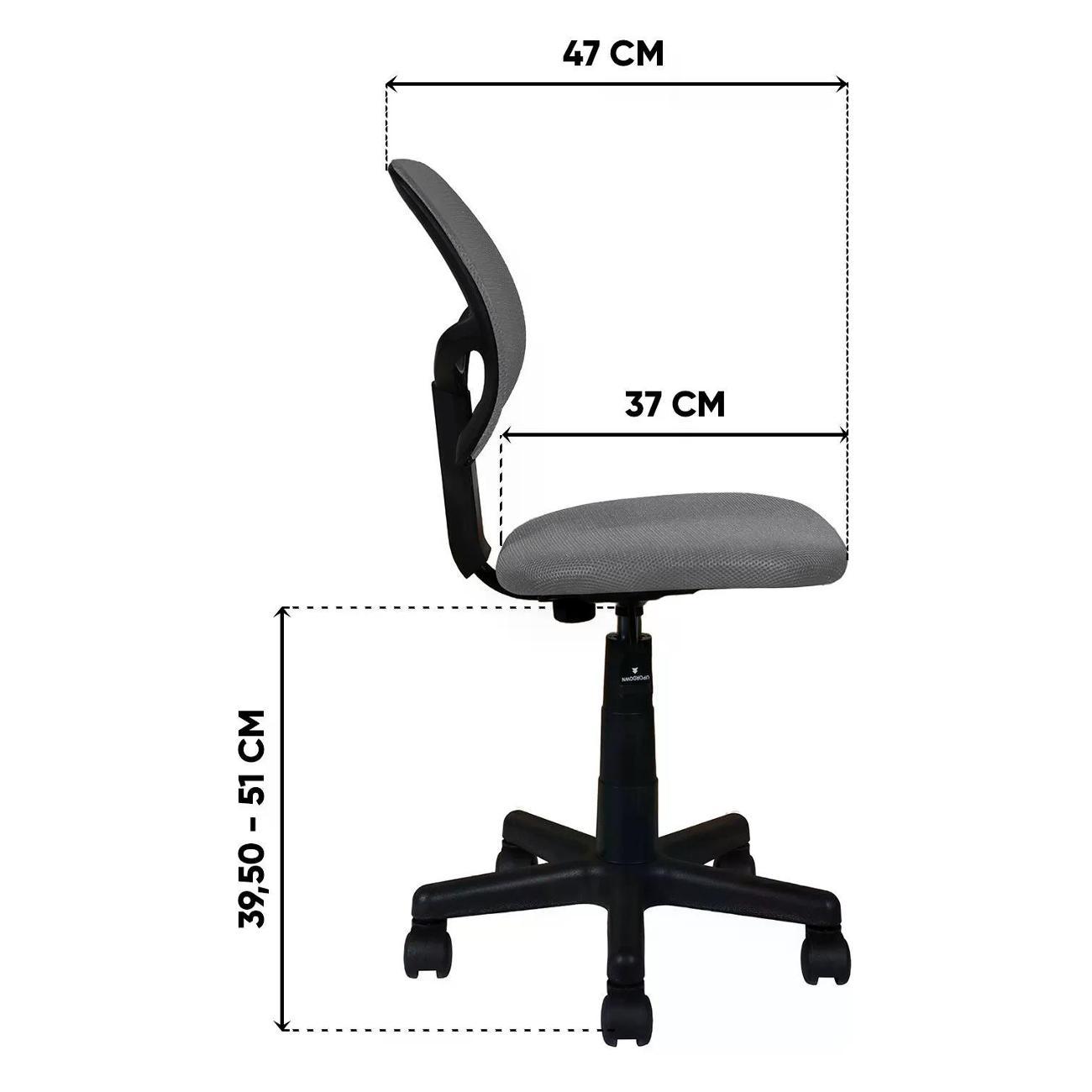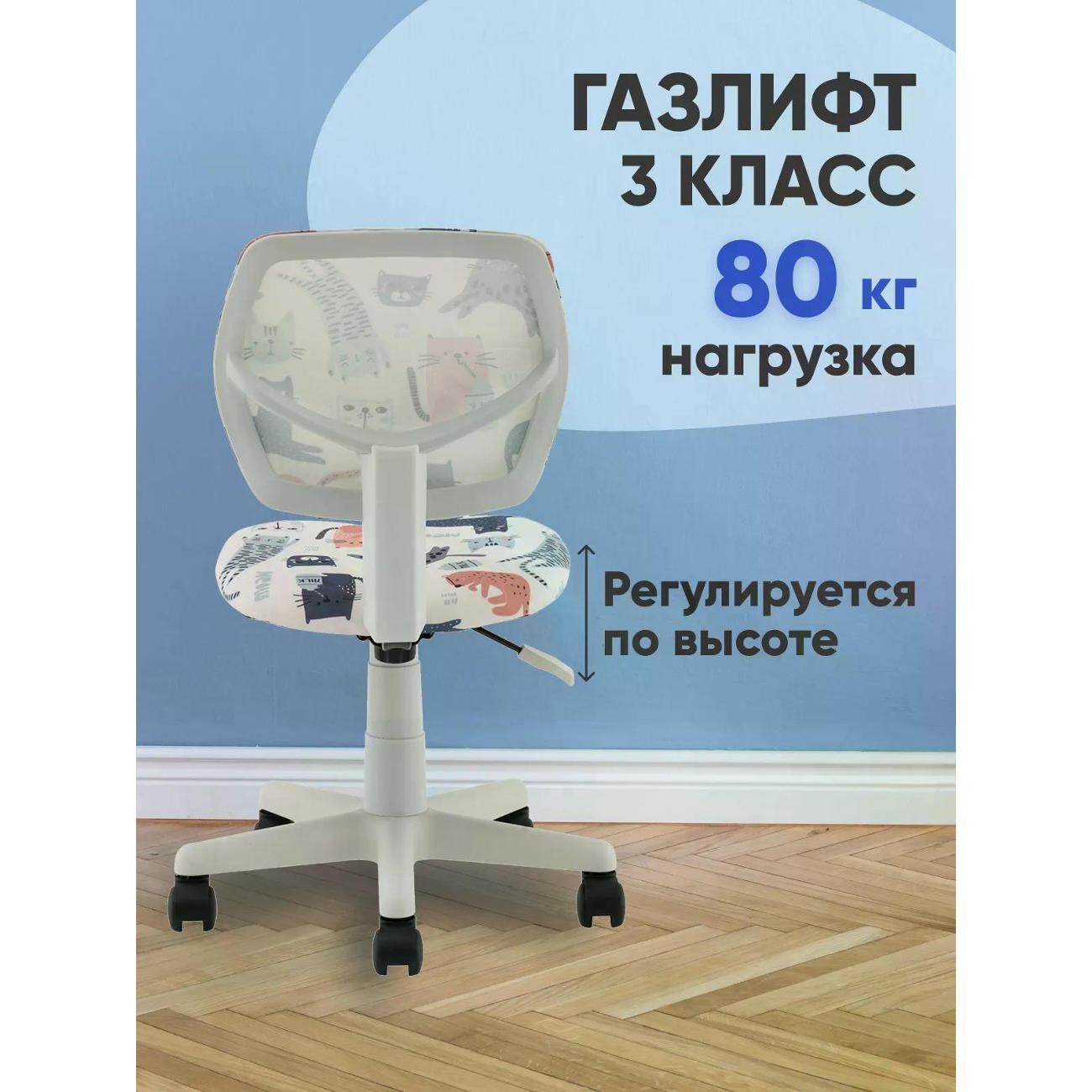 Сиденье и спинка из текстиля. Высота регулируется газ-лифтом 3 класса с механизмом «пиастра». Диапазон высоты сиденья от пола — 39–51 см.
