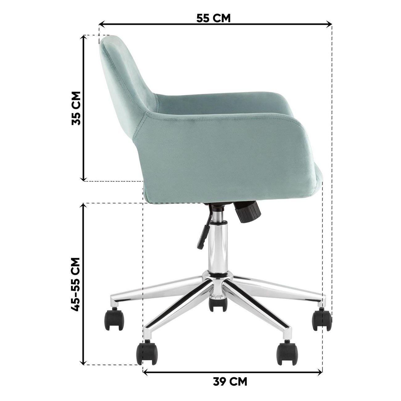 Функциональное мягкое офисное кресло ROSS. Дизайнерская форма этого стула на колесах добавит помещению уюта и стиля, а обивка из велюра выглядит очень изысканно. Комфорта добавляют удобные подлокотники, а благодаря механизму регулировки высоты и качания можно выбрать удобное положение. Удобная спинка оказывает качественную поддержку и позволяет провести в кресле долгое время без усталости. Каркас кресла изготовлен из металла и позволяет выдержать нагрузку до 120 кг. Этот офисный стул на колесиках прекрасно подойдет как для домашенго офиса, так и к рабочему месту школьника. Стул компьютерный Ross представлен в синем, зеленом, сером и розовом цвете. Стильное кресло для мастера маникюра.