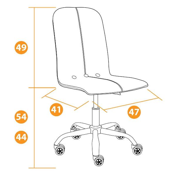 Настройку проводят при помощи рукоятки. Газовый лифт гарантирует плавность подъема и опускания. Крестовина изготовлена из металла и пластика. Простоту транспортировки и перемещения в пределах комнаты создают колесики, не деформирующие напольное покрытие. Нагрузка на изделие не должна превышать 90 кг. Подлокотники отсутствуют. Габариты — 103х47х41 см. Вес — 12,4 кг.