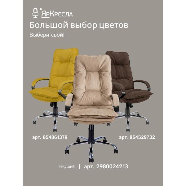 Мягкое компьютерное кресло - это стильное и удобное решение для дома, офиса или кабинета руководителя. Эргономичная конструкция офисного кресла соответствует анатомической форме человека, что помогает снизить нагрузку и усталость при работе за компьютером. Механизм качания интерьерного кресла топ-ган позволяет регулировать кресло по высоте, фиксировать спинку в вертикальном положении и регулировать жесткости качания. Сиденье и спинка кресла в комнату, выполнены из ткани HIT велюр повышенной прочности, что гарантирует долговечность офисного кресла. Обивка мягкая на ощупь и неприхотлива в уходе. Кресло мягкое в гостиную установлено на каркас из фанеры. Анатомические пластиковые подлокотники черного цвета c мягкой накладкой в цвет кресла. Крестовина диаметром 700мм из хромированной стали, ролики имеют мягкий ход, и не портят напольное покрытие.
