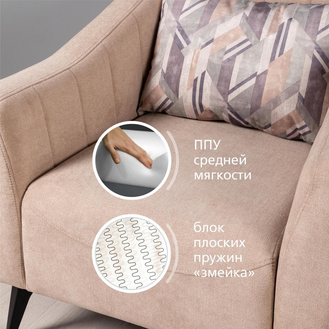 мягкое,глубокое кресло.Можно забраться с ногами,удобно. комфортная посадка с подушкой под спину. Если есть кот,ткань кресла не антивандальная ,но это единственный его изъян.
