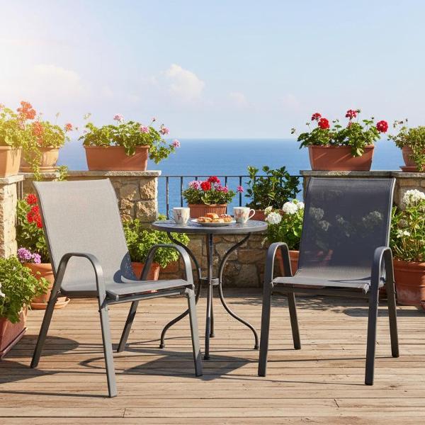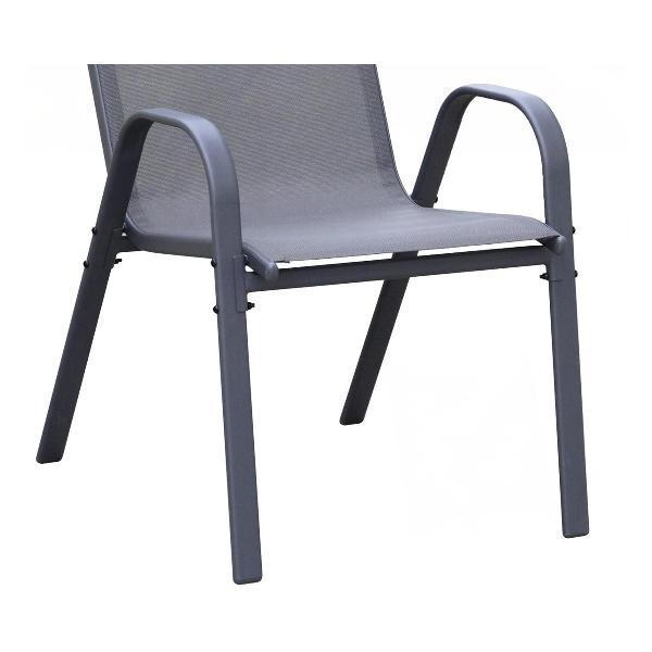 Плотная ткань (текстилен) с водоотталкивающими свойствами быстро сохнет, а стальной каркас с порошковым покрытием устойчив к коррозии. При этом кресло для сада сохраняет все преимущества домашней мебели: его можно поставить на террасу, украсив мягкими подушками и пледом. Удобные подлокотники обеспечивают правильную поддержку рук, снижая нагрузку на плечевой пояс и позвоночник при длительном сидении, а также помогают удобно вставать и садиться, что актуально для пожилых людей. Крепкие металлические ножки исключают вероятность скольжения комплекта уличного, сохраняя безопасность. Максимальная нагрузка на один стул садовый достигает 100 кг, делая его надежным выбором для отдыха на свежем воздухе. Эргономичная спинка и продуманная форма обеспечивают комфорт даже при продолжительном использовании. Его универсальный дизайн и серый цвет впишется в любой интерьер, создавая уютное место для расслабления на улице.