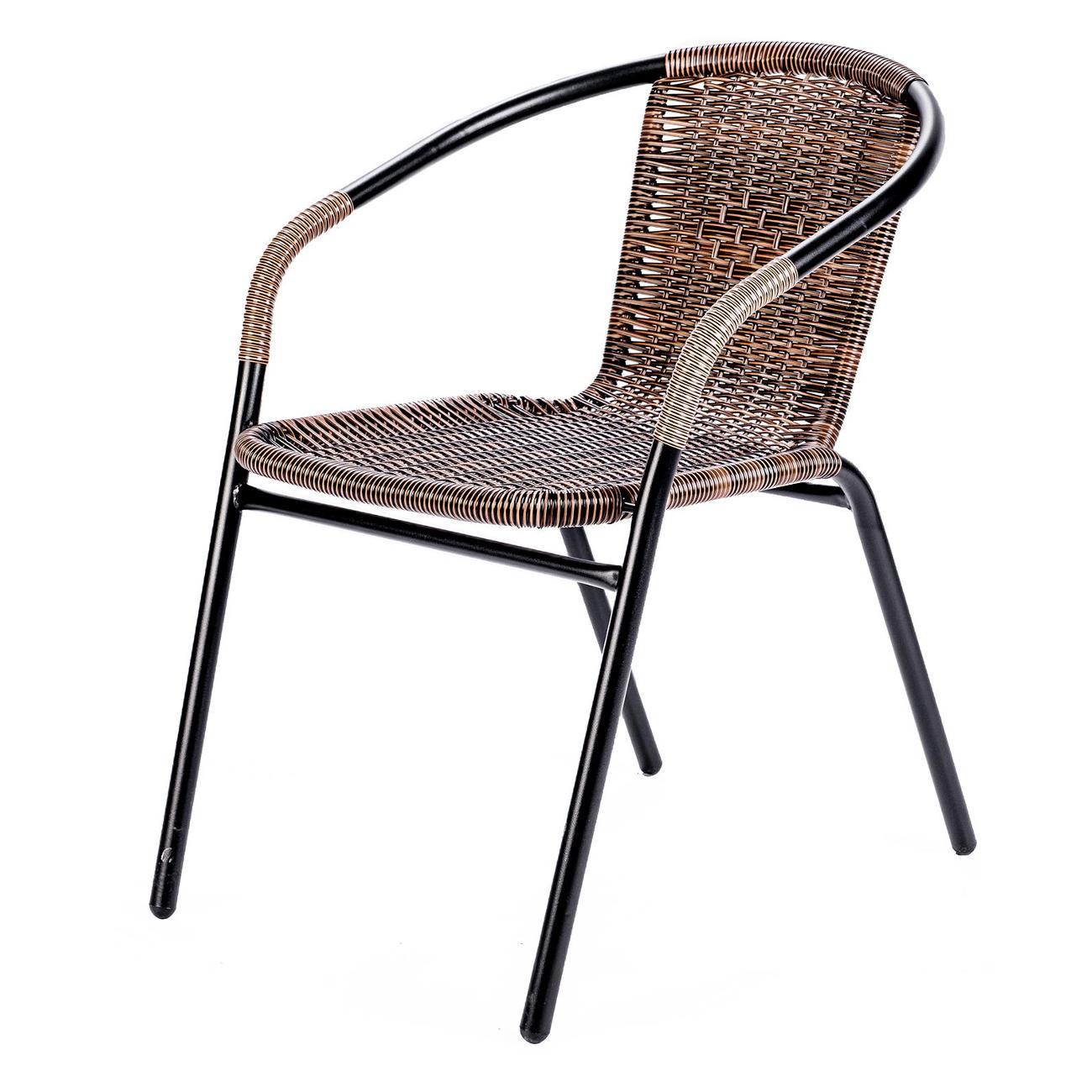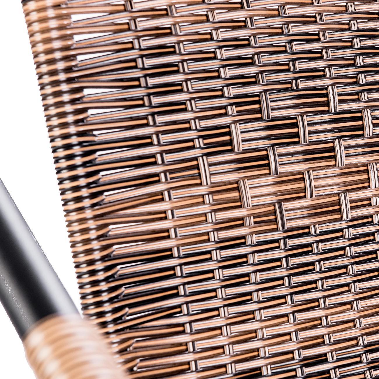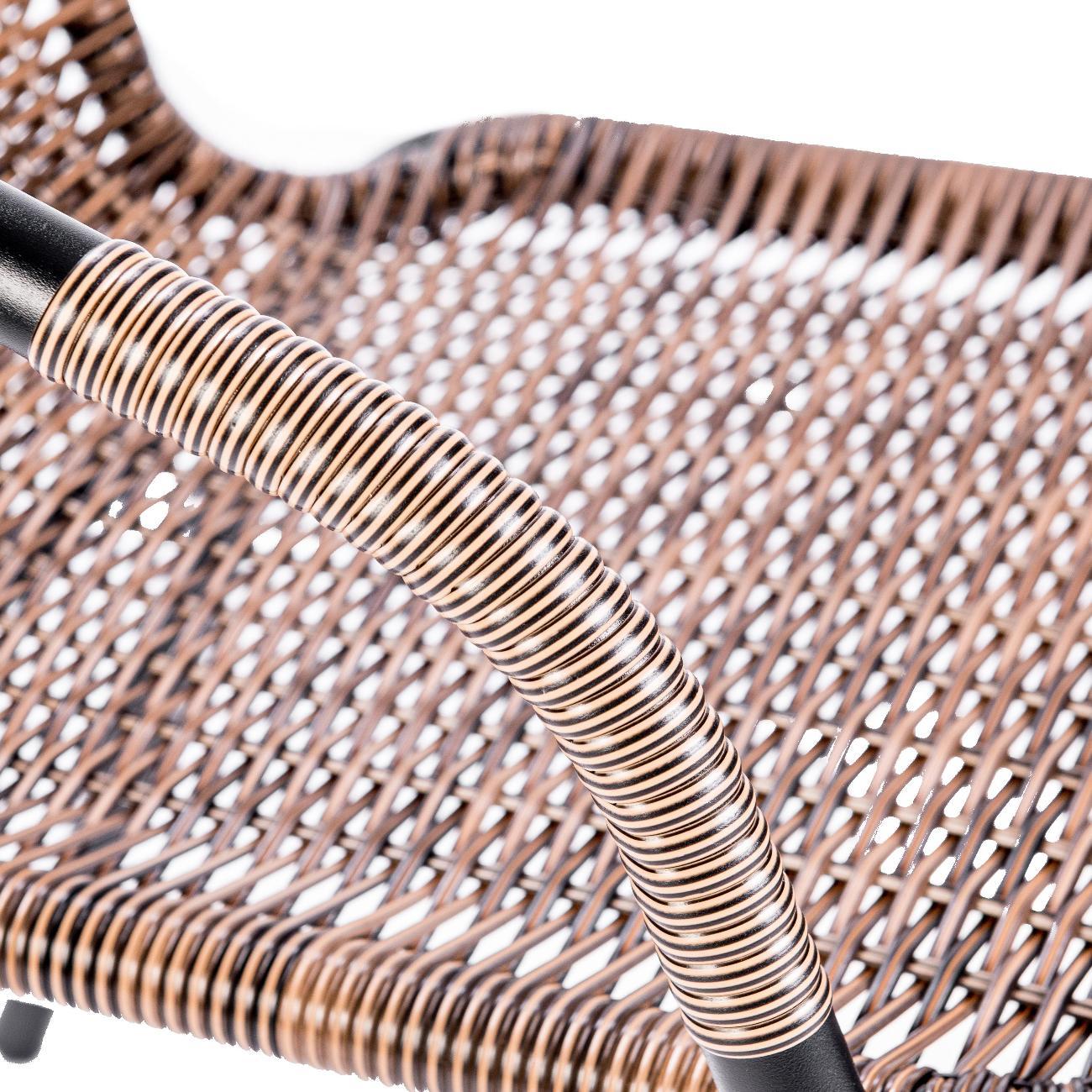 Искусственный ротанг с водоотталкивающими свойствами быстро сохнет, а стальной каркас с порошковым покрытием устойчив к коррозии. При этом кресло для сада сохраняет все преимущества домашней мебели: его можно поставить на террасу, украсив мягкими подушками и пледом. Удобные подлокотники обеспечивают правильную поддержку рук, снижая нагрузку на плечевой пояс и позвоночник при длительном сидении, а также помогают удобно вставать и садиться, что актуально для пожилых людей. Крепкие металлические ножки исключают вероятность скольжения комплекта уличного, сохраняя безопасность. Максимальная нагрузка на один стул садовый достигает 100 кг, делая его надежным выбором для отдыха на свежем воздухе. Эргономичная пластиковая спинка и продуманная форма обеспечивают комфорт даже при продолжительном использовании. Его универсальный дизайн впишется в любой интерьер, от классического до лофт, создавая уютное место для расслабления на улице.