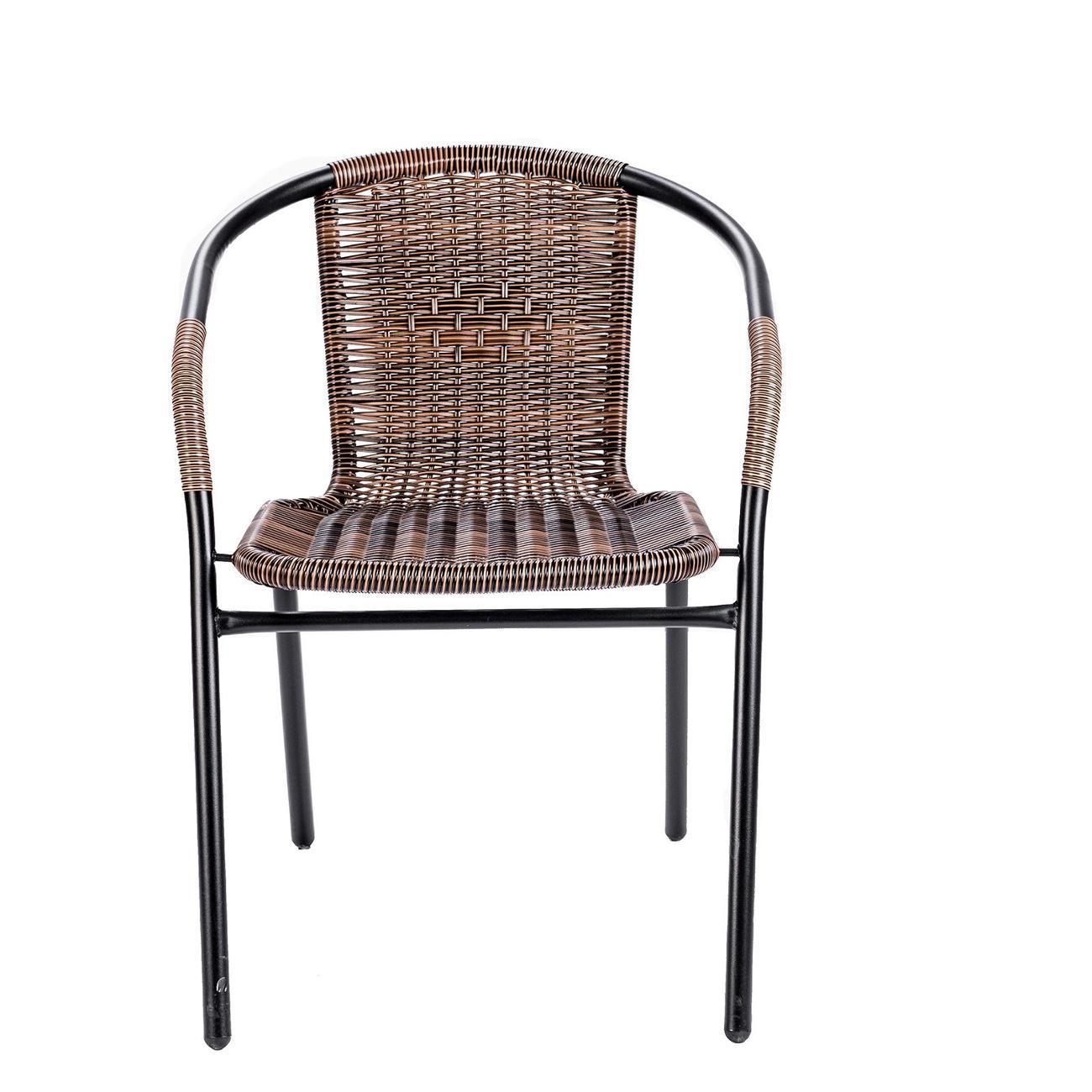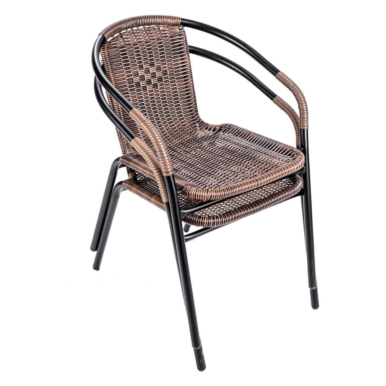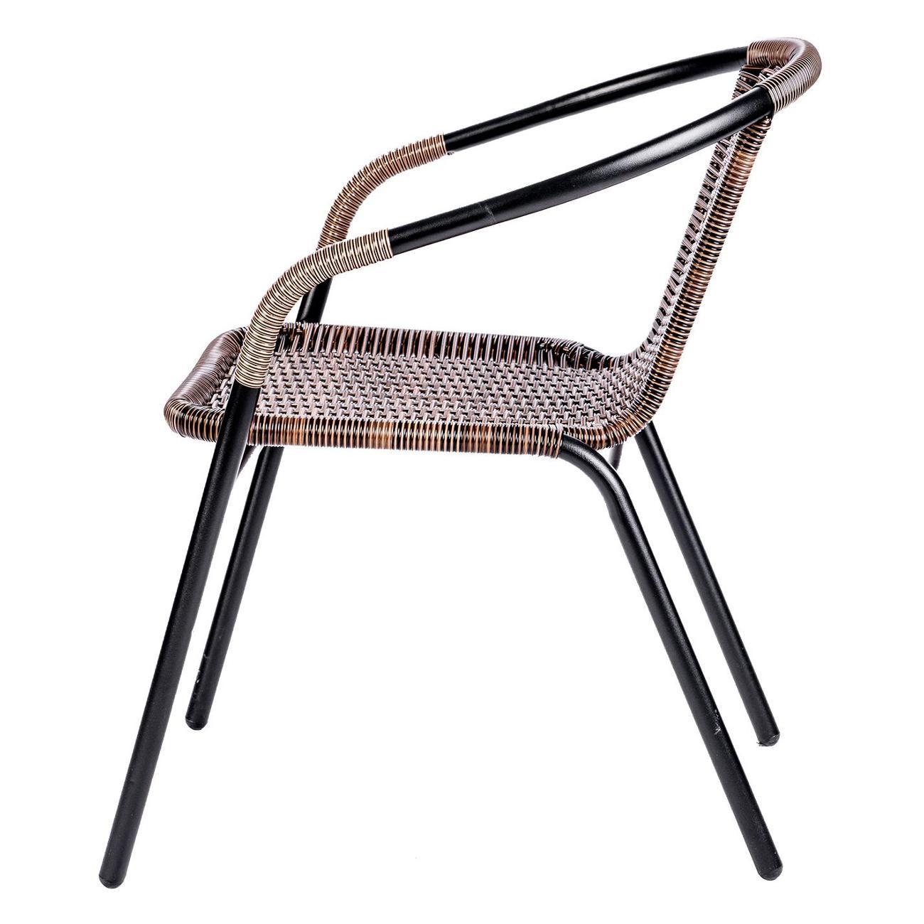 Искусственный ротанг с водоотталкивающими свойствами быстро сохнет, а стальной каркас с порошковым покрытием устойчив к коррозии. При этом кресло для сада сохраняет все преимущества домашней мебели: его можно поставить на террасу, украсив мягкими подушками и пледом. Удобные подлокотники обеспечивают правильную поддержку рук, снижая нагрузку на плечевой пояс и позвоночник при длительном сидении, а также помогают удобно вставать и садиться, что актуально для пожилых людей. Крепкие металлические ножки исключают вероятность скольжения комплекта уличного, сохраняя безопасность. Максимальная нагрузка на один стул садовый достигает 100 кг, делая его надежным выбором для отдыха на свежем воздухе. Эргономичная пластиковая спинка и продуманная форма обеспечивают комфорт даже при продолжительном использовании. Его универсальный дизайн впишется в любой интерьер, от классического до лофт, создавая уютное место для расслабления на улице.