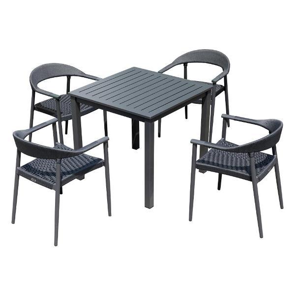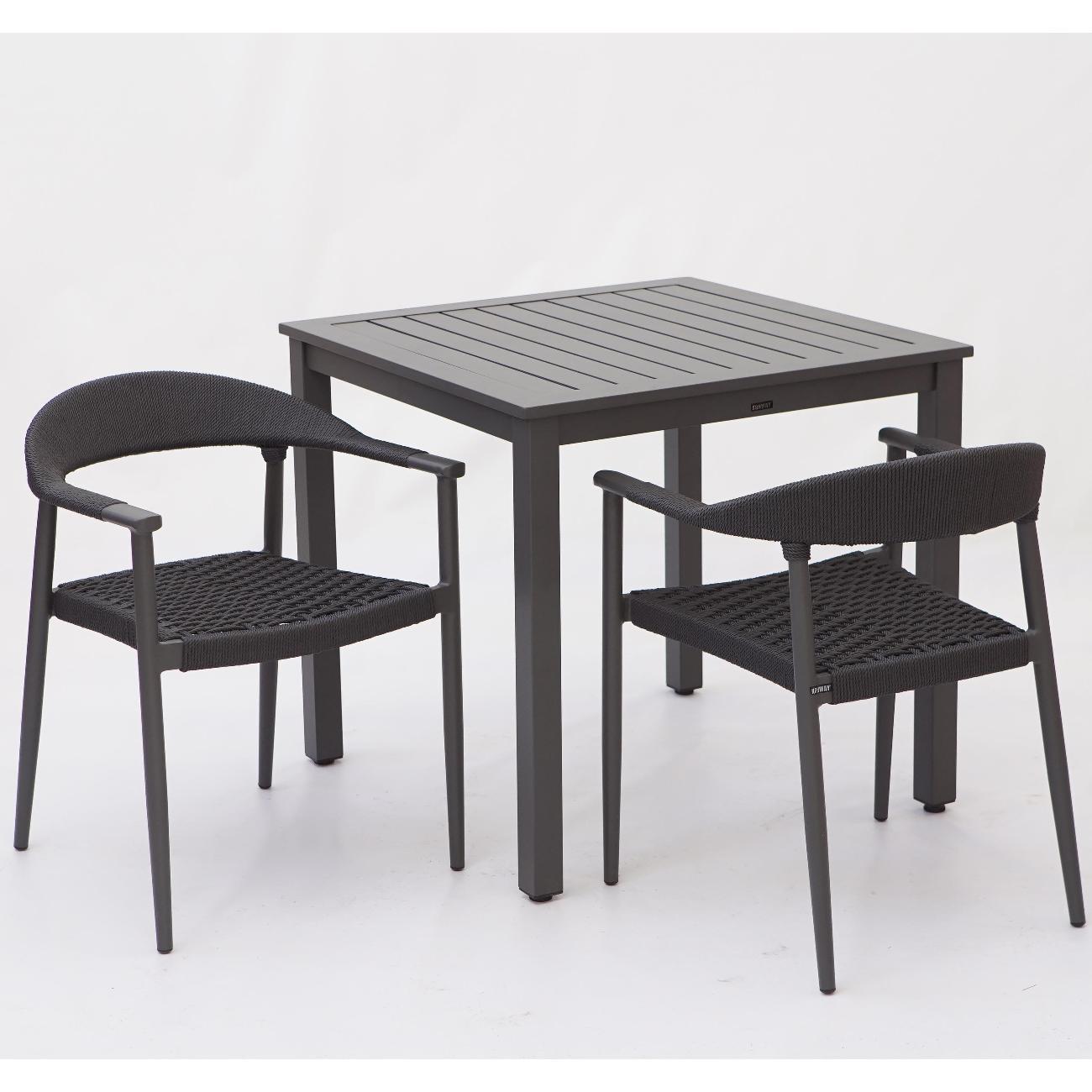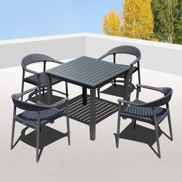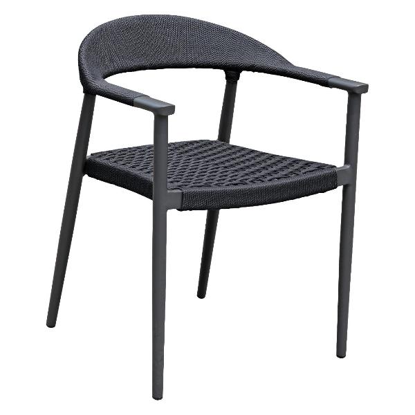 Современное садовое кресло из алюминия с плетением из роупа цвета антрацит. Высококачественная рама выполнена из нержавеющего алюминия с порошковым покрытием и полностью соответствует цвету сидения. Для удобства хранения кресло штабелируются в стопки по 4 шт. Максимальный комфорт посадки достигается применением современных материалов. Кресло станет отличным дополнением вашего загородного дома или приусадебного участка. Современное и практичное кресло будет радовать Вас и ваших гостей многие годы.