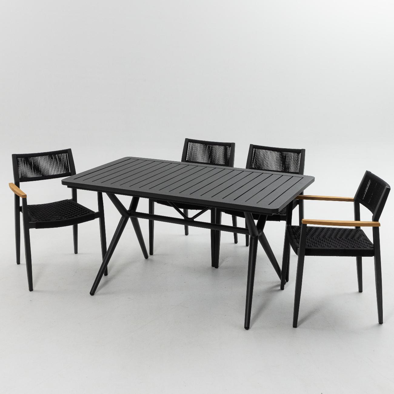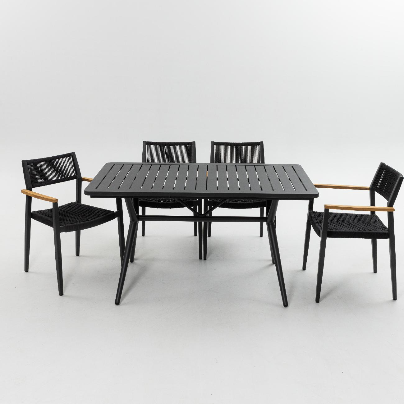 Современное садовое кресло из алюминия с плетением из роупа цвета антрацит. Высококачественная рама выполнена из нержавеющего алюминия с порошковым покрытием и полностью соответствует цвету сидения. Подлокотники выполнены из массива тикового дерева. Для удобства хранения кресло штабелируются в стопки до 20 шт. Максимальный комфорт посадки достигается применением современных материалов. Кресло станет отличным дополнением вашего загородного дома или приусадебного участка. Современное и практичное кресло будет радовать Вас и ваших гостей многие годы.