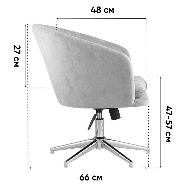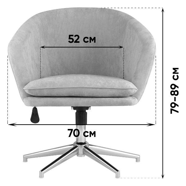 Кресло с механизмом регулировки по высоте. Металлический каркас выдерживает нагрузку до 120 кг. Обивка выполнена из прочной износостойкой замши, устойчивой к повреждениям. Легко поддается чистке. Сиденье и спинка широкой формы эргономичные и комфортные в повседневном использовании. Съемная подушка на сиденье, легко ухаживать.