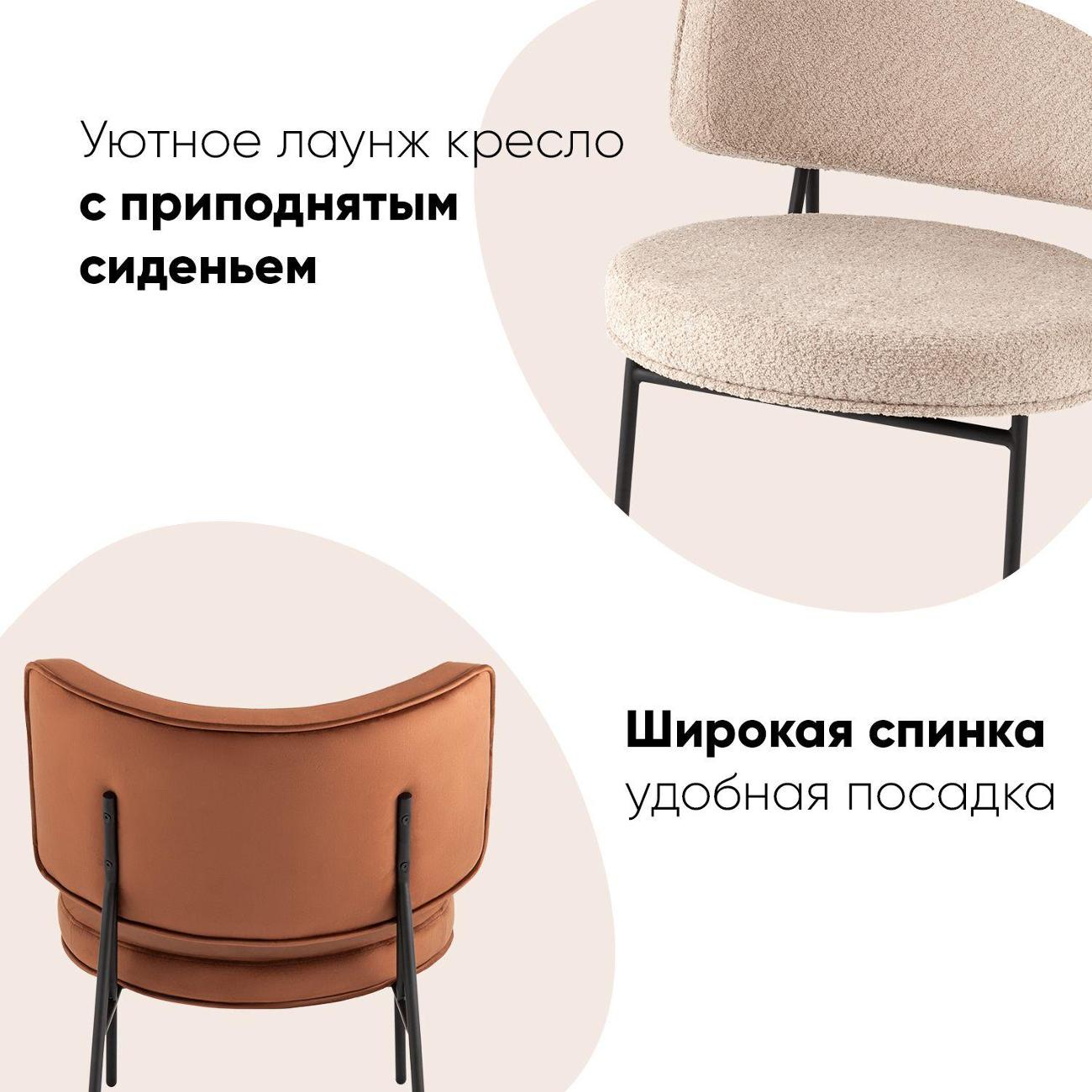 Металлические ножки оснащены подпятниками, которые защищают напольные покрытия от царапин и препятствуют скольжению. Мини-кресло станет отличным выбором для небольших помещений, а благодаря форме легко впишется в любой интерьер. Кресло в стиле лаунж добавит уюта вашей гостиной, а мягкий наполнитель подарит комфорт и расслабление. Кресло на металлическом каркасе прослужит долго и будет радовать своим внешним видом.
