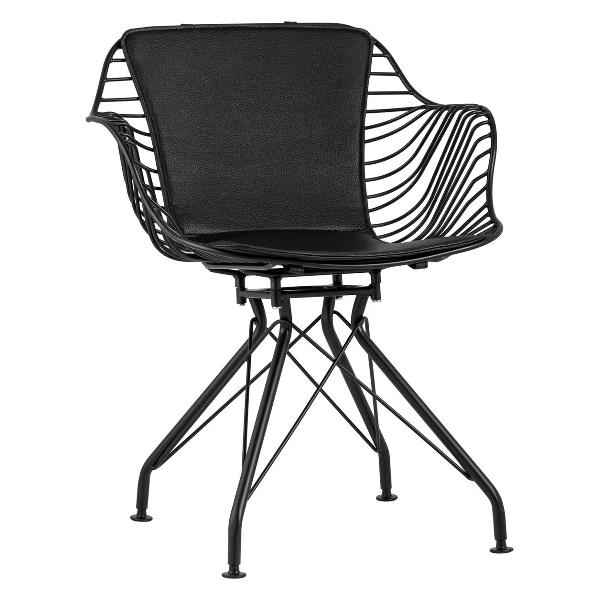 Современное кресло Thomas станет акцентом в интерьере кухни или обеденной зоны. Спинка и сидение выполнены из металлических прутьев черного цвета, из которых по бокам плавно переходят подлокотники. Обивка изготовлена из черной экокожи. Утонченные ножки выполнены из металла в тон сидения. Высота кресла - 80 см. Высота сидения - 43 см. Ширина - 64,5. Глубина - 54,5 см. Максимальная нагрузка - 120 кг. Комплект из 2 кресел 16886660