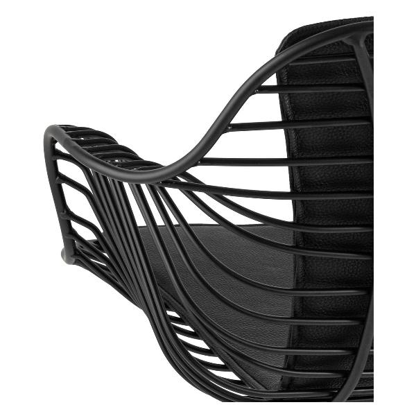 Этот стул выполнен в современном стиле, с прочным металлическим каркасом, который обеспечивает надежность и долговечность. Кожаное кресло черное придаст интерьеру элегантный и стильный вид, а мягкое сиденье подарит максимальный комфорт при использовании.