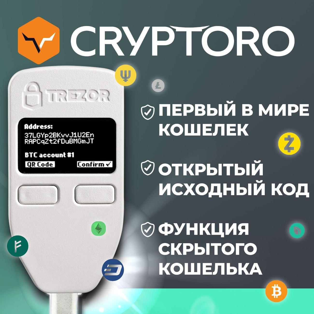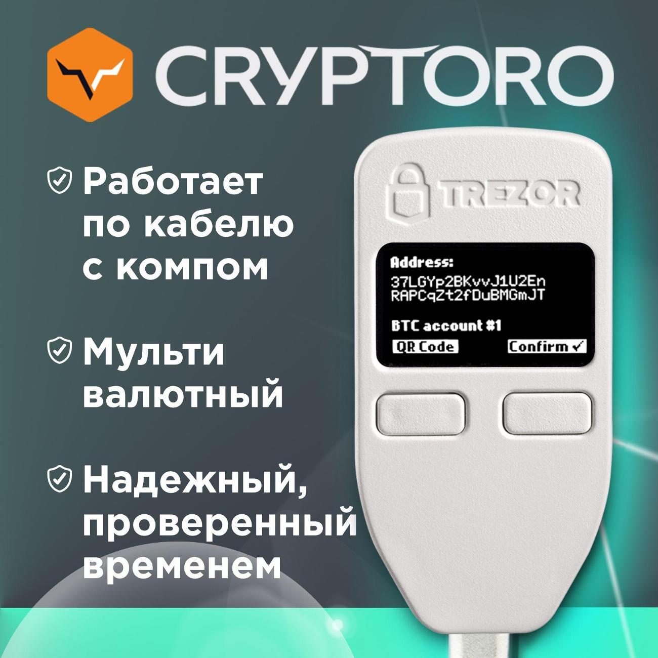Криптокошелек Trezor One White — устройство, предназначенное для хранения и управления разными видами цифровых активов. Высокий уровень безопасности криптовалюты обеспечивается шифрованием данных AEC и чипом STM32 F2. Модель совместима с большинством ОС, в том числе Android, iOS и Windows.