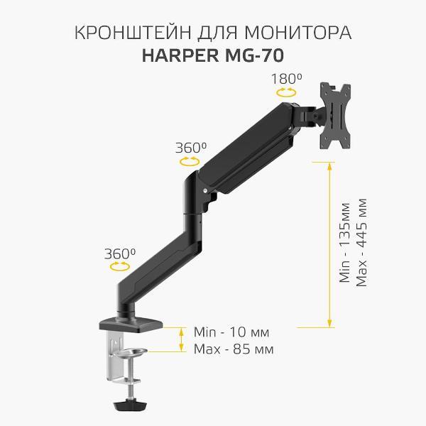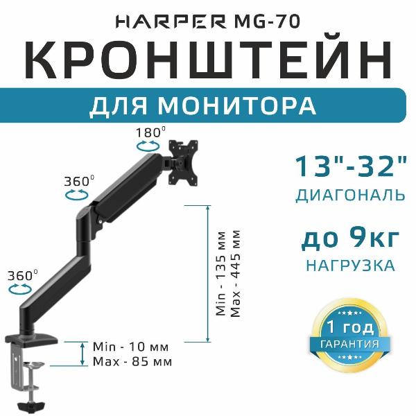 Вы можете купить Кронштейн для монитора Harper MG-70 в магазинах М.Видео по доступной цене. Кронштейн для монитора Harper MG-70: подробное описание, фото и отзывы реальных покупателей, характеристики, возможность скачать инструкции и подобрать аксессуары.