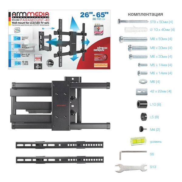 Вы можете купить Кронштейн для телевизора Arm Media PARAMOUNT-40 в магазинах М.Видео по доступной цене. Кронштейн для телевизора Arm Media PARAMOUNT-40: подробное описание, фото и отзывы реальных покупателей, характеристики, возможность скачать инструкции и подобрать аксессуары.