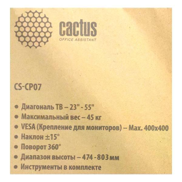 Вы можете купить Кронштейн для телевизора Cactus CS-CP07 в магазинах М.Видео по доступной цене. Кронштейн для телевизора Cactus CS-CP07: подробное описание, фото и отзывы реальных покупателей, характеристики, возможность скачать инструкции и подобрать аксессуары.