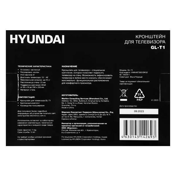 Вы можете купить Кронштейн для телевизора Hyundai GL-T1 в магазинах М.Видео по доступной цене. Кронштейн для телевизора Hyundai GL-T1: подробное описание, фото и отзывы реальных покупателей, характеристики, возможность скачать инструкции и подобрать аксессуары.