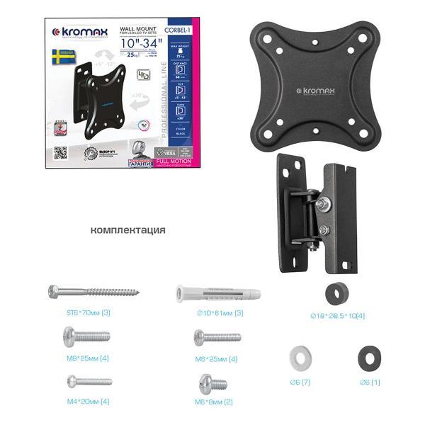 Вы можете купить Кронштейн для телевизора Kromax CORBEL-1 в магазинах М.Видео по доступной цене. Кронштейн для телевизора Kromax CORBEL-1: подробное описание, фото и отзывы реальных покупателей, характеристики, возможность скачать инструкции и подобрать аксессуары.