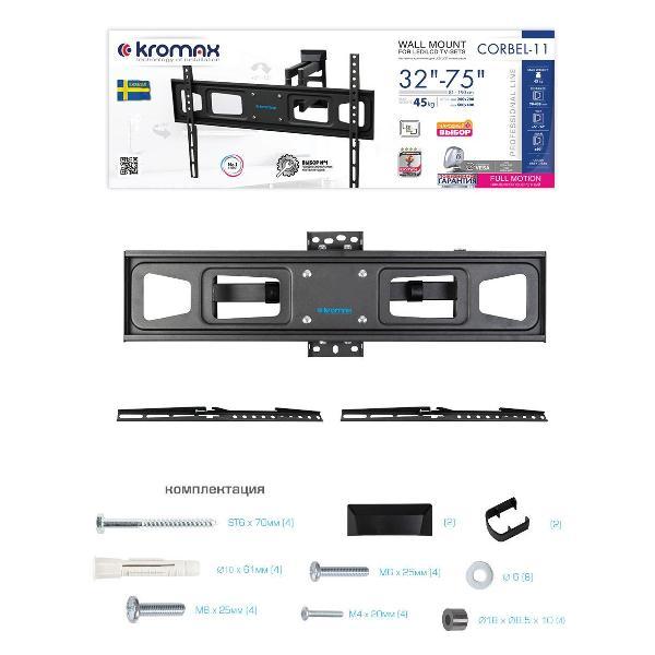 Вы можете купить Кронштейн для телевизора Kromax CORBEL-11 в магазинах М.Видео по доступной цене. Кронштейн для телевизора Kromax CORBEL-11: подробное описание, фото и отзывы реальных покупателей, характеристики, возможность скачать инструкции и подобрать аксессуары.