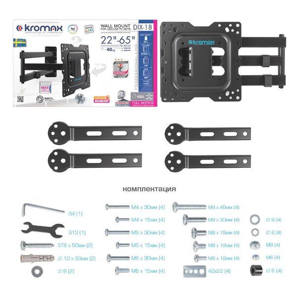Вы можете купить Кронштейн для телевизора Kromax DIX-18 в магазинах М.Видео по доступной цене. Кронштейн для телевизора Kromax DIX-18: подробное описание, фото и отзывы реальных покупателей, характеристики, возможность скачать инструкции и подобрать аксессуары.