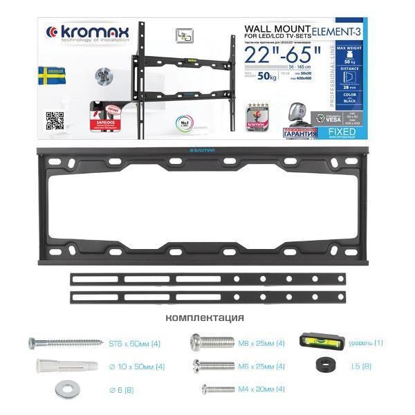 Вы можете купить Кронштейн для телевизора Kromax ELEMENT-3 в магазинах М.Видео по доступной цене. Кронштейн для телевизора Kromax ELEMENT-3: подробное описание, фото и отзывы реальных покупателей, характеристики, возможность скачать инструкции и подобрать аксессуары.