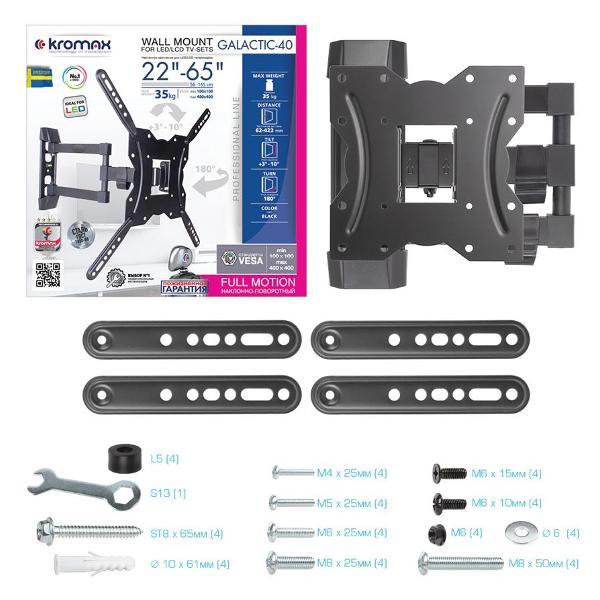Вы можете купить Кронштейн для телевизора Kromax GALACTIC-40 в магазинах М.Видео по доступной цене. Кронштейн для телевизора Kromax GALACTIC-40: подробное описание, фото и отзывы реальных покупателей, характеристики, возможность скачать инструкции и подобрать аксессуары.