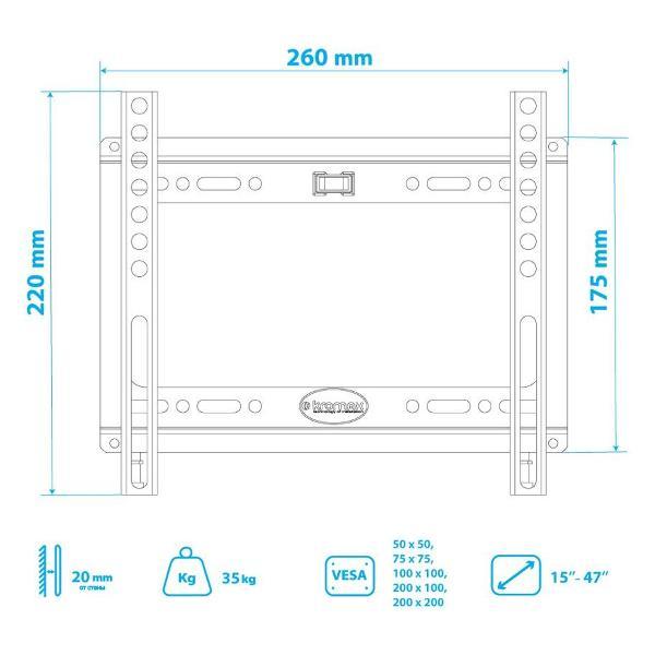 Вы можете купить Кронштейн для телевизора Kromax IDEAL-5 в магазинах М.Видео по доступной цене. Кронштейн для телевизора Kromax IDEAL-5: подробное описание, фото и отзывы реальных покупателей, характеристики, возможность скачать инструкции и подобрать аксессуары.