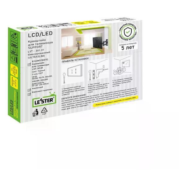 Настенный фиксированный кронштейн серии Le'ster предназначен для телевизоров и мониторов с диагональю от 10 до 55 дюймов (25 – 139 см)- это идеально подходящее крепление для телевизоров всех типов и аудиотехники на стенку в гостиной или на кухне. Этот универсальный кронштейн имеет фиксированное положение.