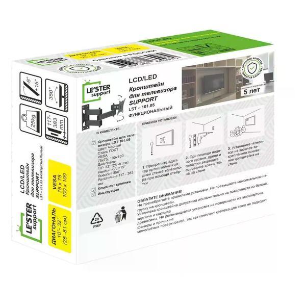 Вы можете купить Кронштейн для телевизора LE`STER LST-101.05 в магазинах М.Видео по доступной цене. Кронштейн для телевизора LE`STER LST-101.05: подробное описание, фото и отзывы реальных покупателей, характеристики, возможность скачать инструкции и подобрать аксессуары.