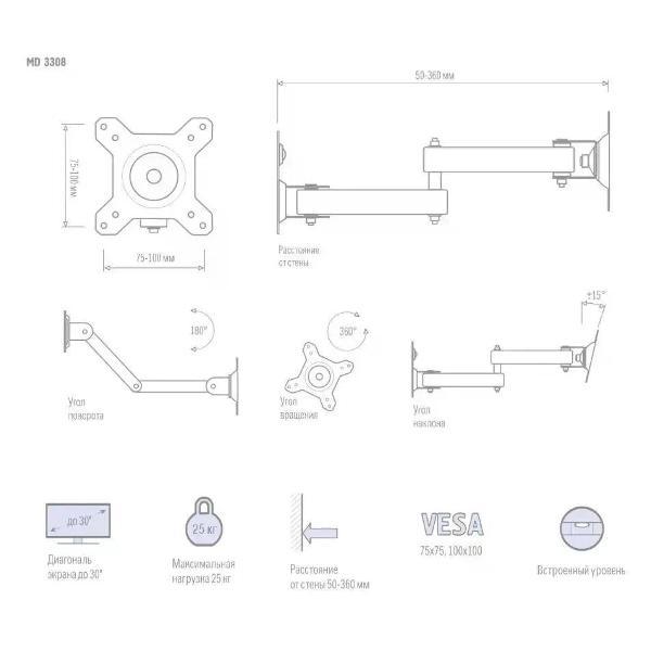 Вы можете купить Кронштейн для телевизора MD 3308 в магазинах М.Видео по доступной цене. Кронштейн для телевизора MD 3308: подробное описание, фото и отзывы реальных покупателей, характеристики, возможность скачать инструкции и подобрать аксессуары.