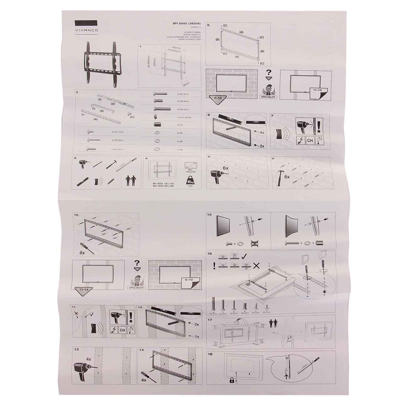 Вы можете купить Кронштейн для ТВ фиксированный Vivanco BFI 5040 (39504) в магазинах М.Видео по доступной цене. Кронштейн для ТВ фиксированный Vivanco BFI 5040 (39504): подробное описание, фото и отзывы реальных покупателей, характеристики, возможность скачать инструкции и подобрать аксессуары.