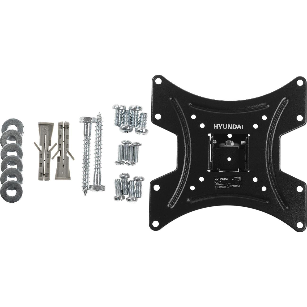 Кронштейн я приобрел вместе с телевизором Hyundai диагональю 32 дюйма. Смотрится компактно, зазор между стеной и телевизором небольшой. Держит крепко и позволяет плавно менять наклон корпуса. Все, что необходимо для фиксации на стене, есть в комплекте. И если в будущем захочу снять телевизор, проблем с демонтажом не будет.