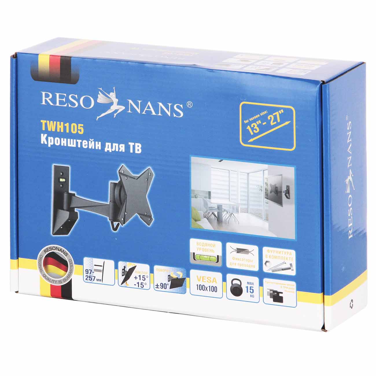 Вы можете купить Кронштейн для ТВ наклонно-поворотный Resonans TWH105 в магазинах М.Видео по доступной цене. Кронштейн для ТВ наклонно-поворотный Resonans TWH105: подробное описание, фото и отзывы реальных покупателей, характеристики, возможность скачать инструкции и подобрать аксессуары.