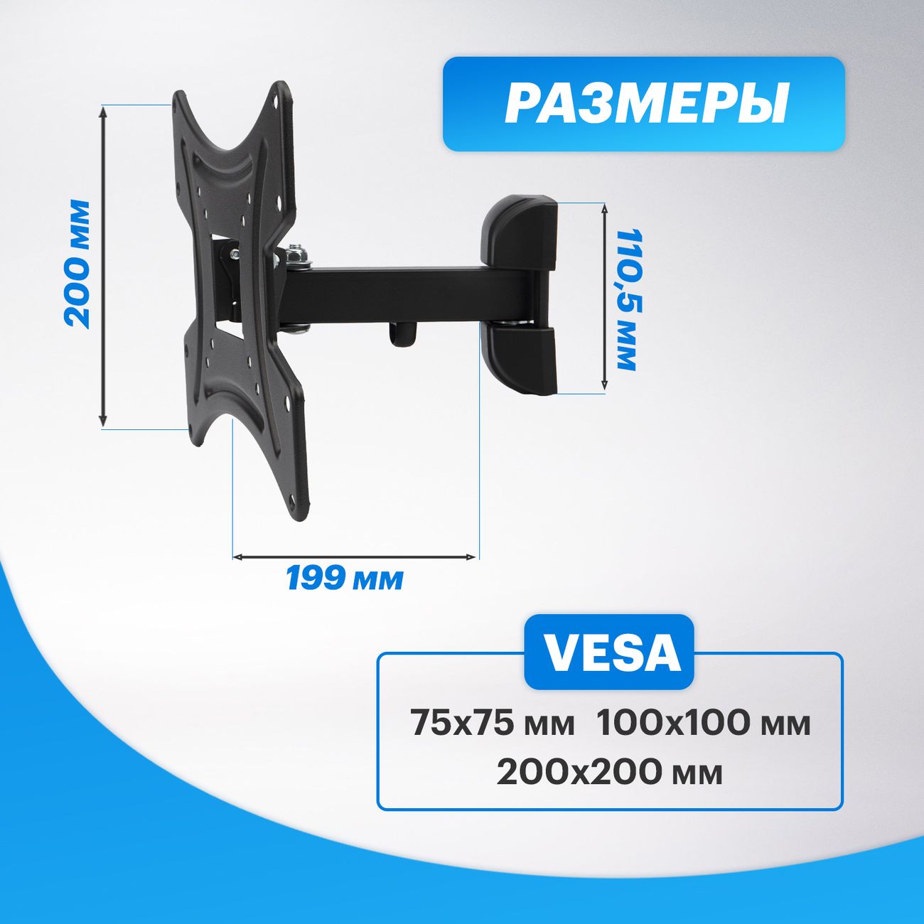 Кронштейн для ТВ наклонно-поворотный Rexant Для телевизора 17-42,наклонно-поворотный(38-0060)