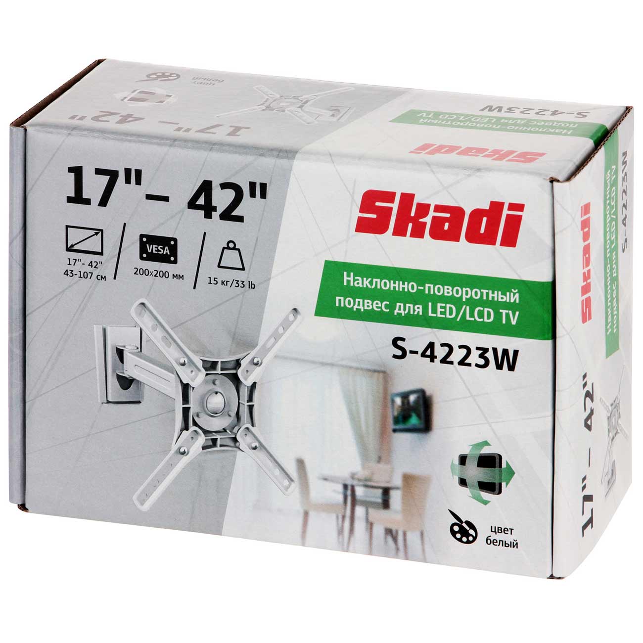 Вы можете купить Кронштейн для ТВ наклонно-поворотный Skadi S-4223 W в магазинах М.Видео по доступной цене. Кронштейн для ТВ наклонно-поворотный Skadi S-4223 W: подробное описание, фото и отзывы реальных покупателей, характеристики, возможность скачать инструкции и подобрать аксессуары.