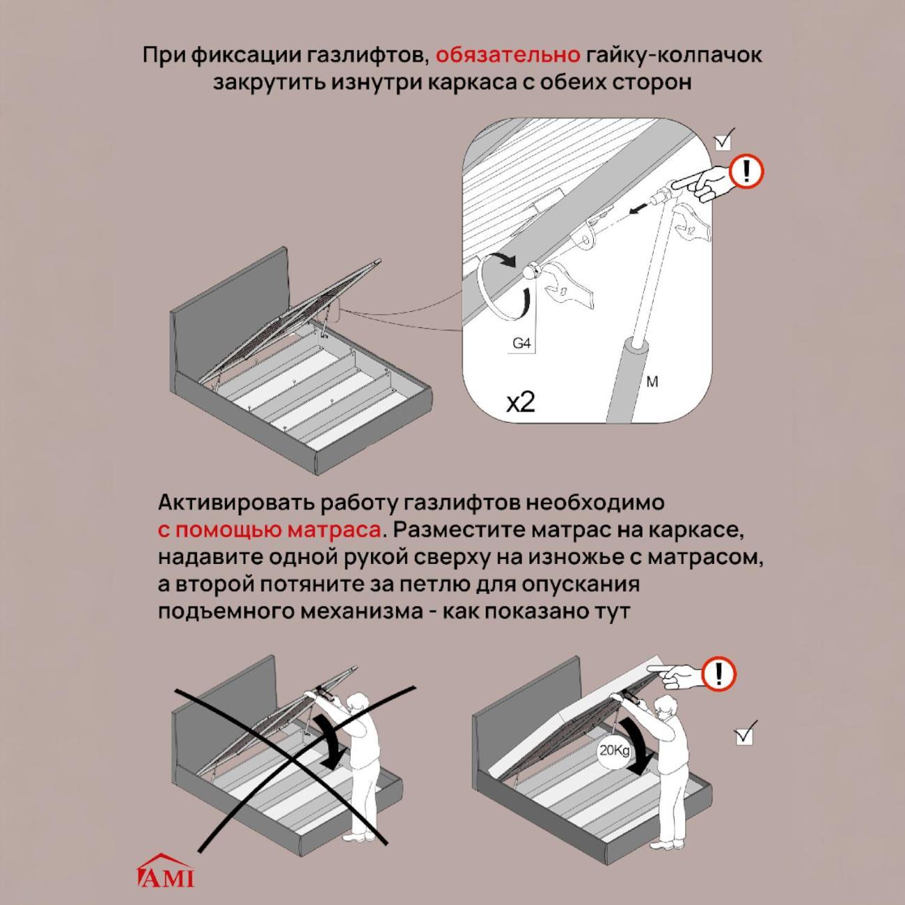 ВНИМАНИЕ! НЕЛЬЗЯ опускать подъемный механизм без матраса! Он не опустится и это не брак амортизаторов.
