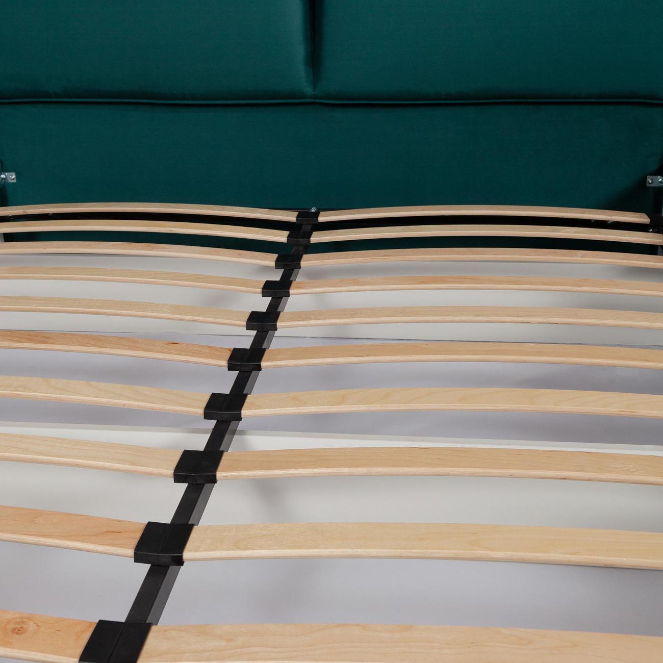 Двуспальная кровать 160x200 с мягким изголовьем идеально подходит для взрослой спальни и обеспечивает комфортный сон. Основание выполнено из ламелей, что гарантирует ортопедическую поддержку и амортизацию. Каркас изготовлен из ЛДСП — прочного материала, придающего надежность конструкции без ножек. Подъемный механизм позволяет легко поднимать основание кровати, где расположены вместительные ящики для хранения вещей. Максимальная нагрузка на мебель составляет 200 кг, делая ее устойчивой и безопасной в использовании для людей разной комплекции.