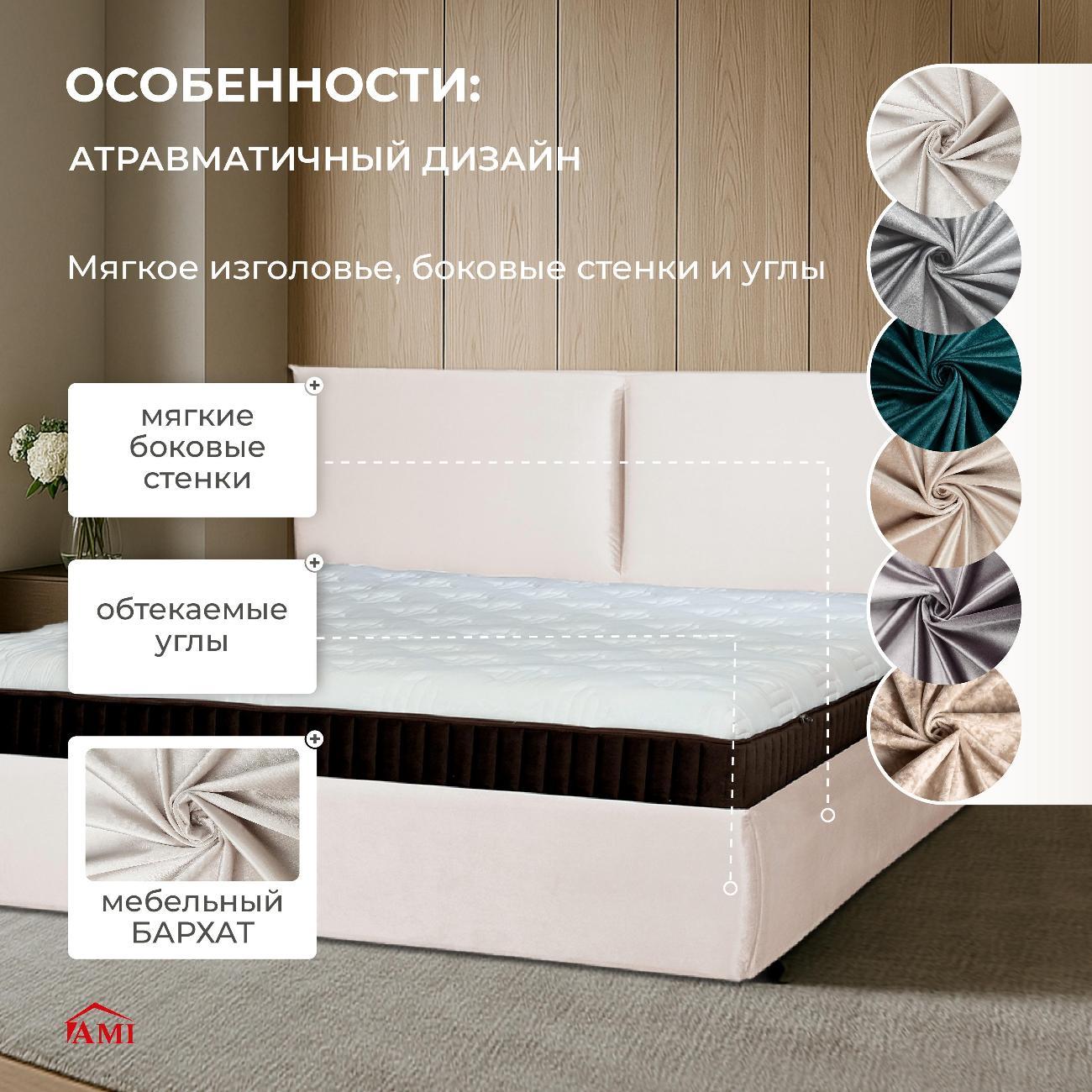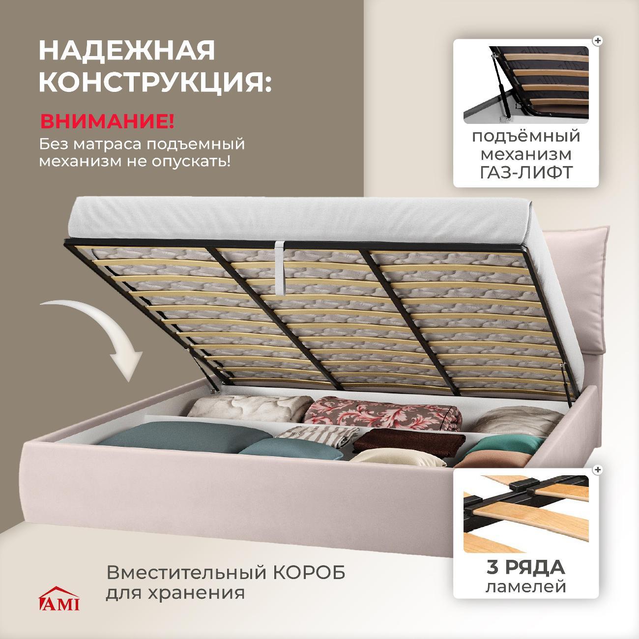 Двуспальная кровать 180x200 с мягким изголовьем идеально подходит для взрослой спальни и обеспечивает комфортный сон. Основание выполнено из ламелей, что гарантирует ортопедическую поддержку и амортизацию. Каркас изготовлен из ЛДСП — прочного материала, придающего надежность конструкции без ножек. Подъемный механизм позволяет легко поднимать основание кровати, где расположены вместительные ящики для хранения вещей. Максимальная нагрузка на мебель составляет 200 кг, делая ее устойчивой и безопасной в использовании для людей разной комплекции.