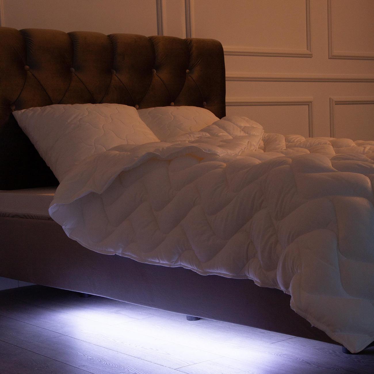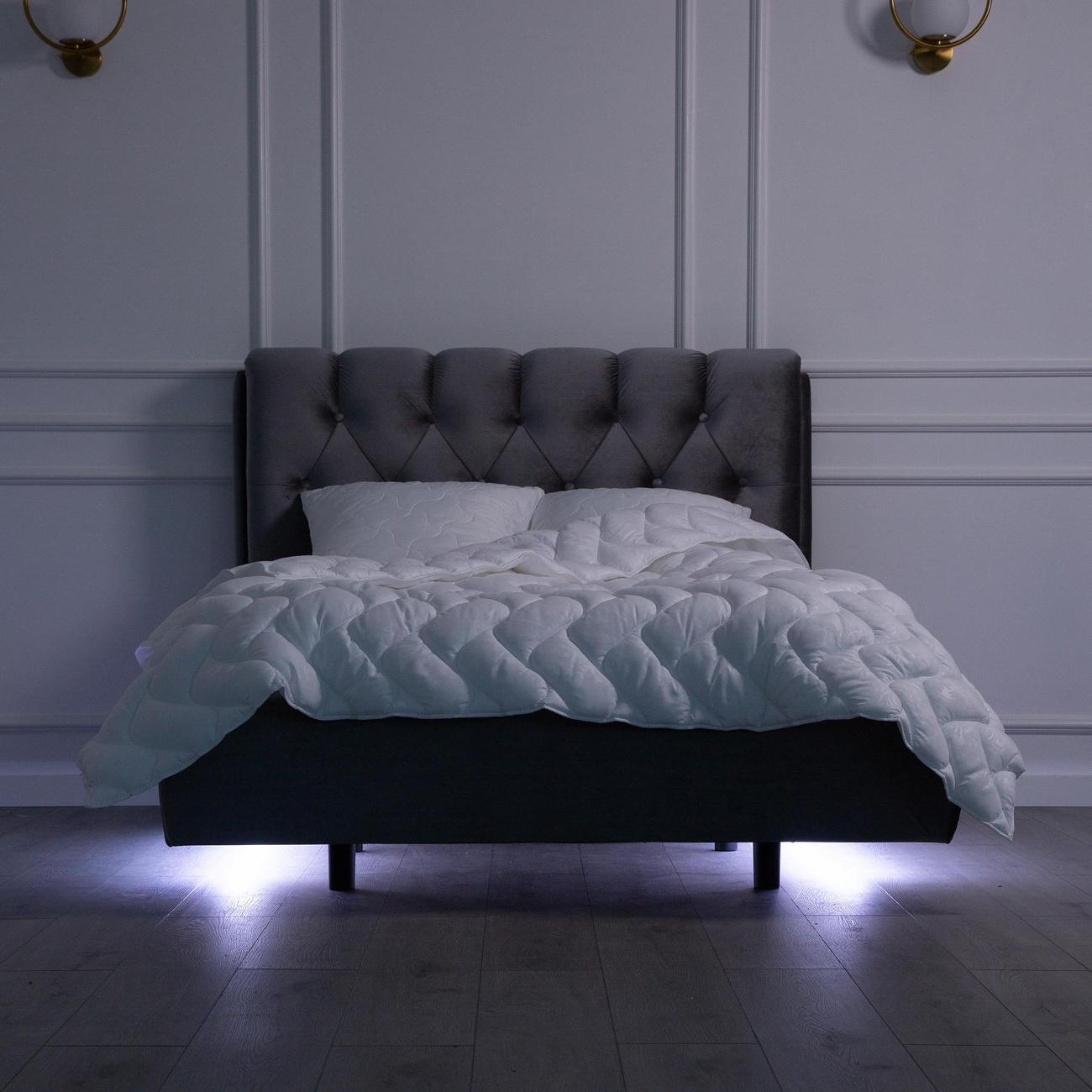 Этот предмет мебели станет функциональным решением для комнаты благодаря продуманному дизайну с эффектом левитации и качественным материалам. За счет того, что ножки расположены глубже, чем у традиционных моделей, а дно подсвечивается лед подсветкой, создается эффект невесомости. Обивка из бархата придает спальной зоне уют и стиль, а евро размеры 140 на 200 создают достаточно пространства для отдыха вдвоем. Двухместная кровать с подъемным механизмом отлично впишется в интерьер любой квартиры, сочетая удобство сна с практичностью хранения вещей.