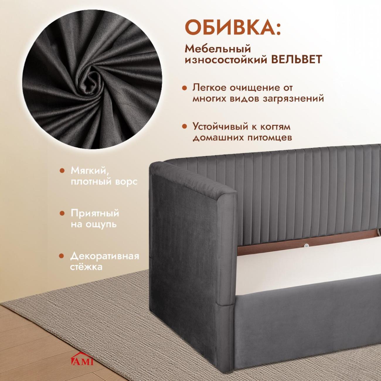 Односпальная евро кровать 90х200 см — современное решение для детской комнаты. Отличается лаконичным дизайном и функциональностью, подходит как для мальчика, так и для девочки. Подростковая мебель выполнена из ЛДСП, что обеспечивает прочность и долговечность. Мягкое изголовье и бортик обиты приятным на ощупь вельветом, создавая дополнительный комфорт при отдыхе или чтении. Спальное место рассчитано на нагрузку до 100 кг, поэтому модель подойдет не только детям, но и взрослым.