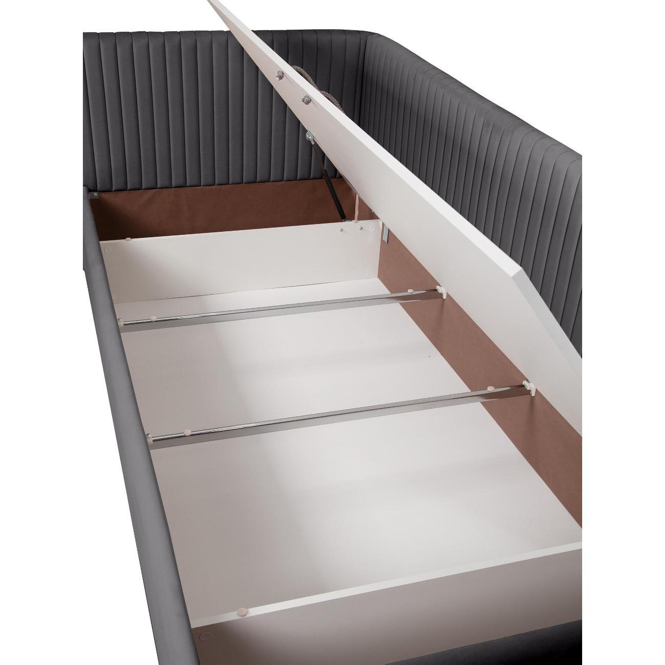 Одноместная кроватка с подъемным механизмом оснащена газлифтом — это удобно для легкого поднятия крышки короба и хранения постельных принадлежностей или других вещей под данным изделием. Дополнительные ящики обеспечивают порядок в комнате и позволяют рационально использовать пространство даже в небольшой спальне. Наш вариант гармонично впишется в любой интерьер благодаря универсальному оформлению, будь то лофт или модерн.