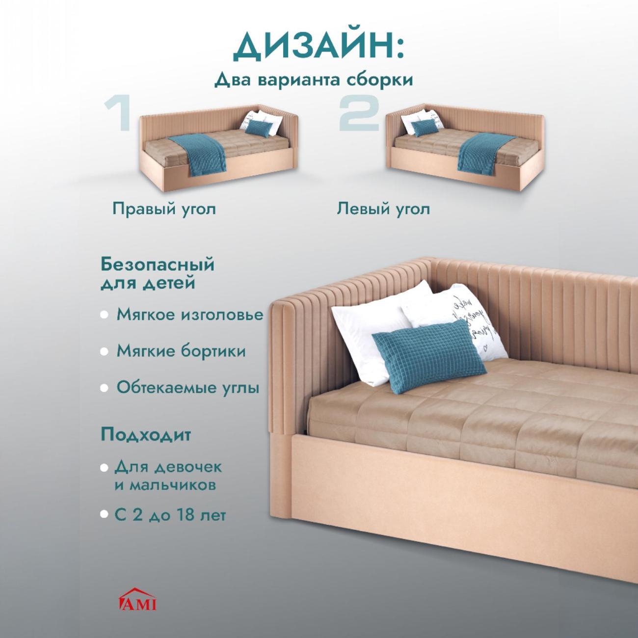 Односпальная евро кровать 90х200 см — современное решение для детской комнаты. Отличается лаконичным дизайном и функциональностью, подходит как для мальчика, так и для девочки. Подростковая мебель выполнена из ЛДСП, что обеспечивает прочность и долговечность. Мягкое изголовье и бортик обиты приятным на ощупь вельветом, создавая дополнительный комфорт при отдыхе или чтении. Спальное место рассчитано на нагрузку до 100 кг, поэтому модель подойдет не только детям, но и взрослым.