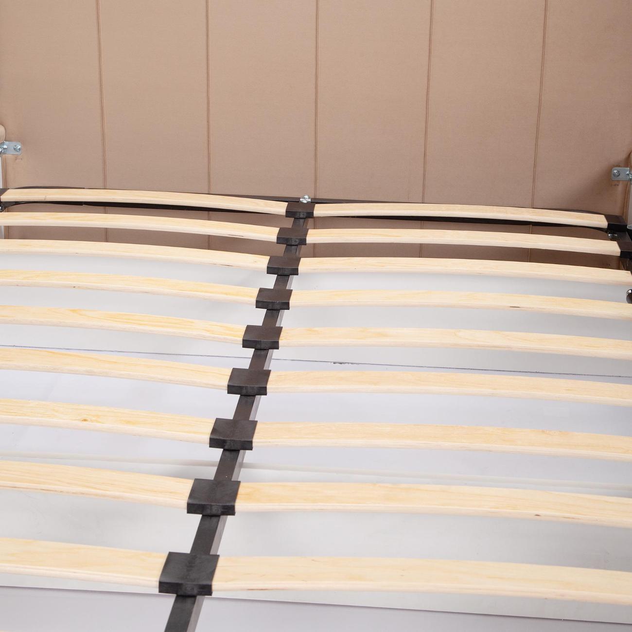 Полутороспальная кровать 120x200 с мягким изголовьем идеально подходит для спальни или детской комнаты, обеспечивая комфортный сон. Основание выполнено из ламелей, что гарантирует ортопедическую поддержку и амортизацию. Каркас изготовлен из ЛДСП — прочного материала, придающего надежность конструкции без ножек. Подъемный механизм позволяет легко поднимать основание кровати, где расположены вместительные ящики для хранения вещей. Максимальная нагрузка на мебель составляет 150 кг, делая ее устойчивой и безопасной в использовании для людей разной комплекции.