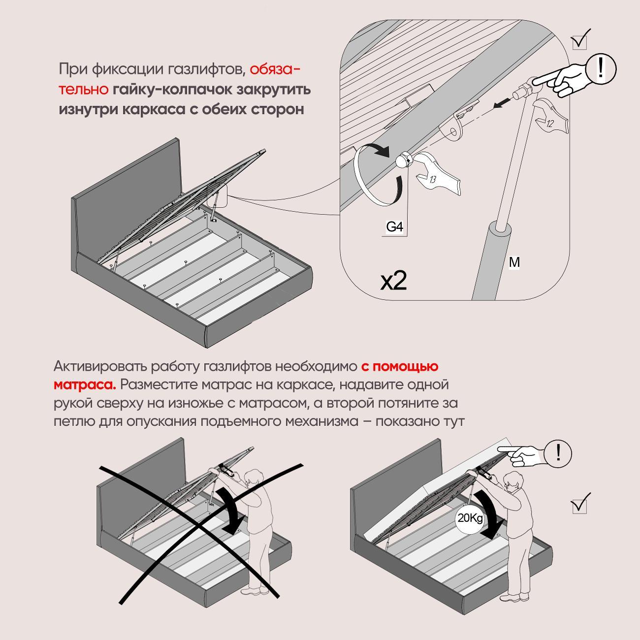 ВНИМАНИЕ! НЕЛЬЗЯ опускать подъемный механизм без матраса! Он не опустится и это не брак амортизаторов.