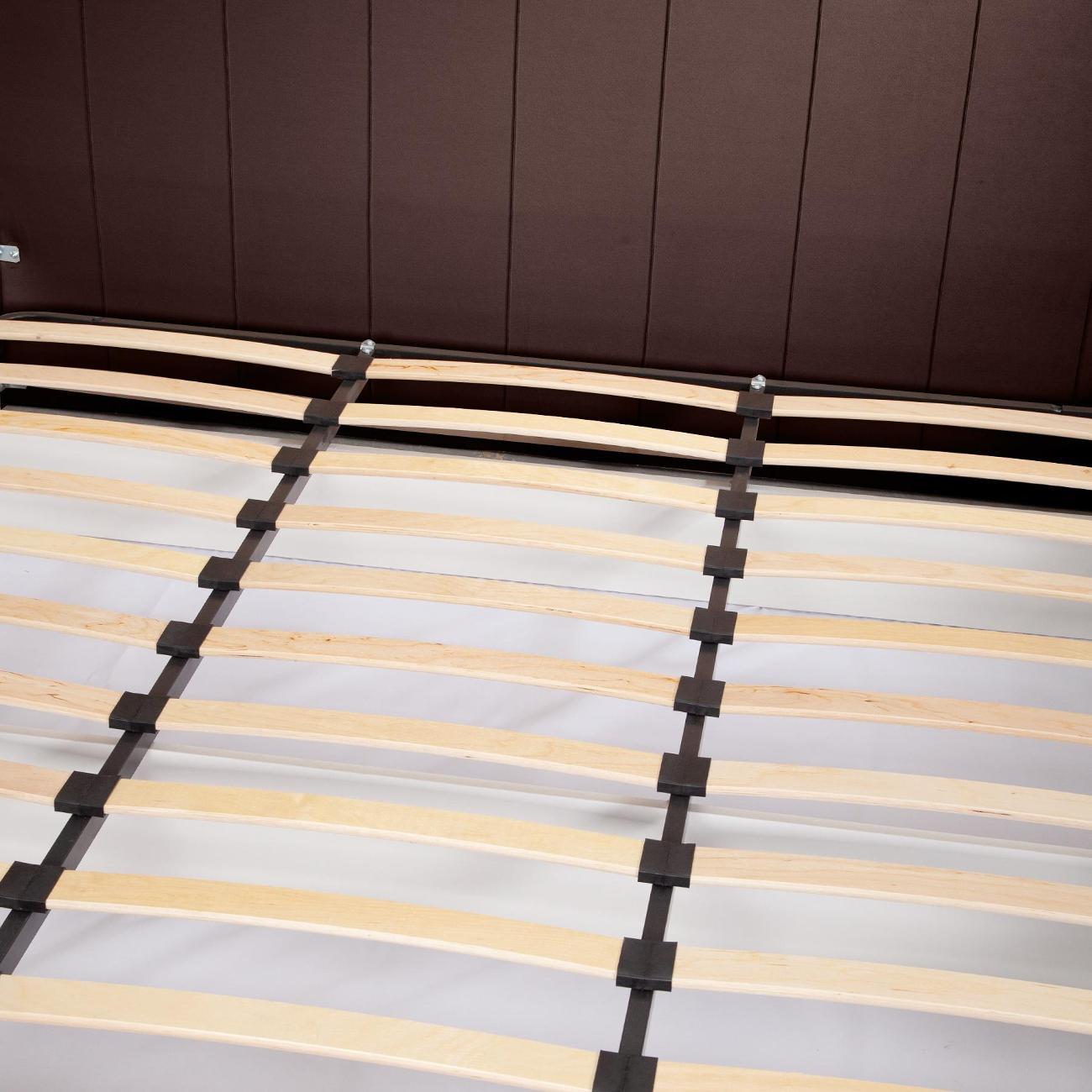 Двуспальная кровать 180x200 с мягким изголовьем идеально подходит для взрослой спальни и обеспечивает комфортный сон. Основание выполнено из ламелей, что гарантирует ортопедическую поддержку и амортизацию. Каркас изготовлен из ЛДСП — прочного материала, придающего надежность конструкции без ножек. Подъемный механизм позволяет легко поднимать основание кровати, где расположены вместительные ящики для хранения вещей. Максимальная нагрузка на мебель составляет 200 кг, делая ее устойчивой и безопасной в использовании для людей разной комплекции.