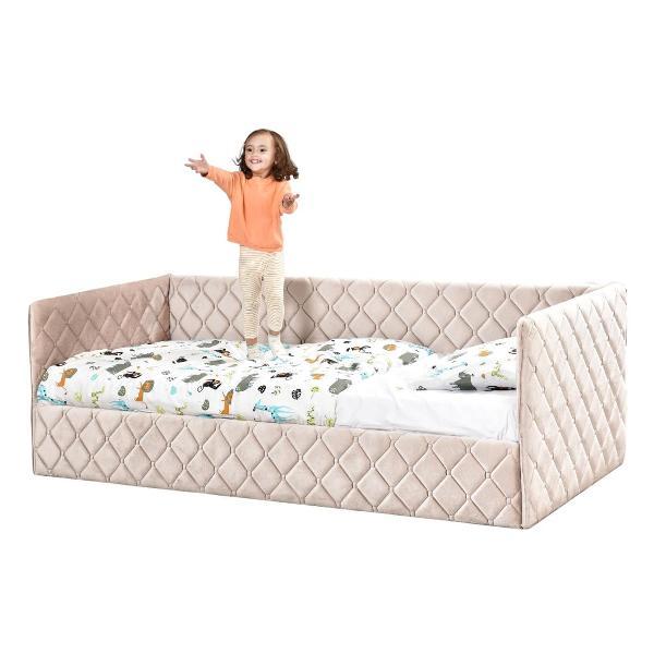 Односпальная евро кровать 90х200 см — современное решение для детской комнаты. Отличается лаконичным дизайном и функциональностью, подходит как для мальчика, так и для девочки. Подростковая мебель выполнена из ЛДСП, что обеспечивает прочность и долговечность. Мягкое изголовье и бортики обиты приятным на ощупь бархатом, создавая дополнительный комфорт при отдыхе или чтении. Спальное место рассчитано на нагрузку до 100 кг, поэтому модель подойдет не только детям, но и взрослым.