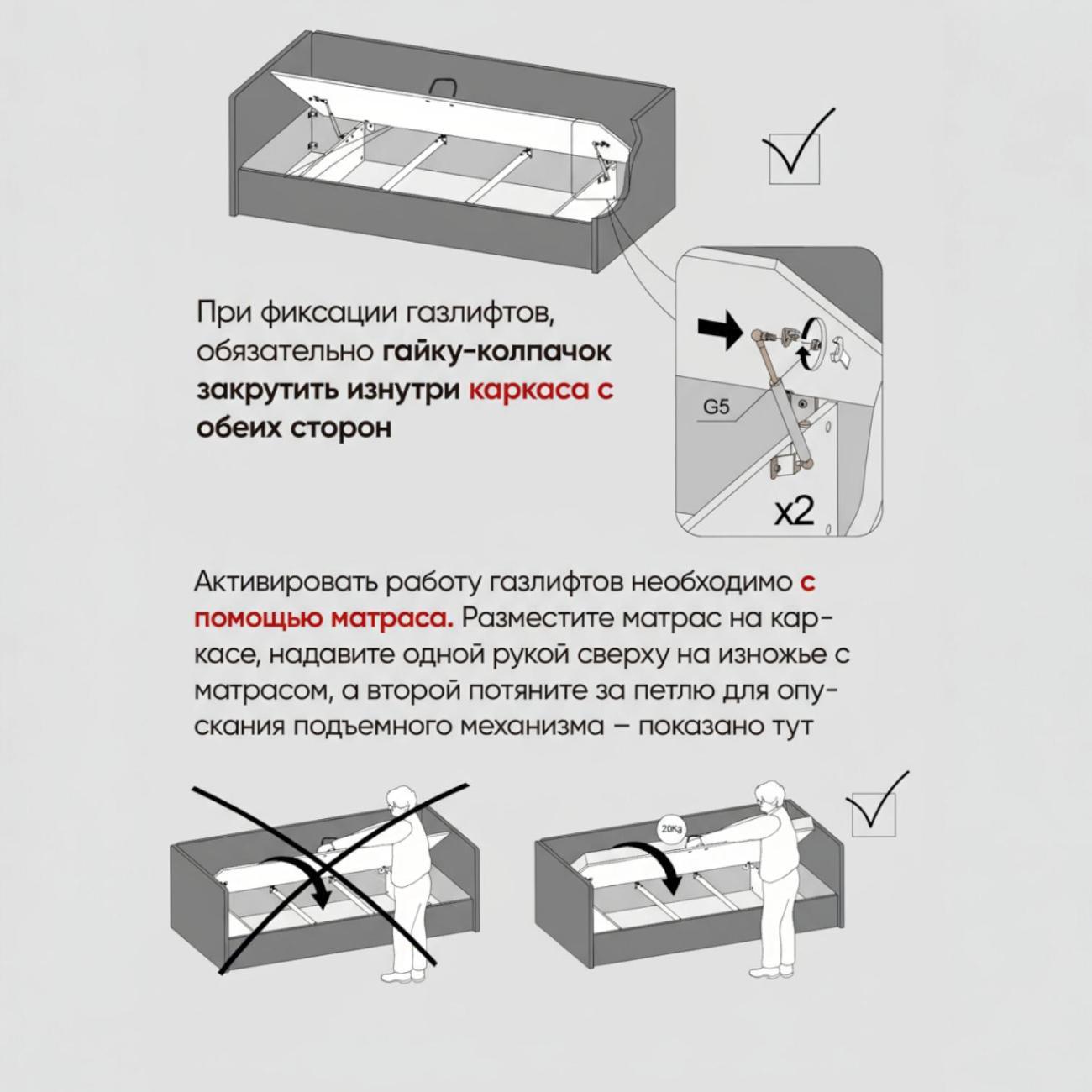 ВНИМАНИЕ! НЕЛЬЗЯ опускать подъемный механизм без матраса! Он не опустится и это не брак амортизаторов.