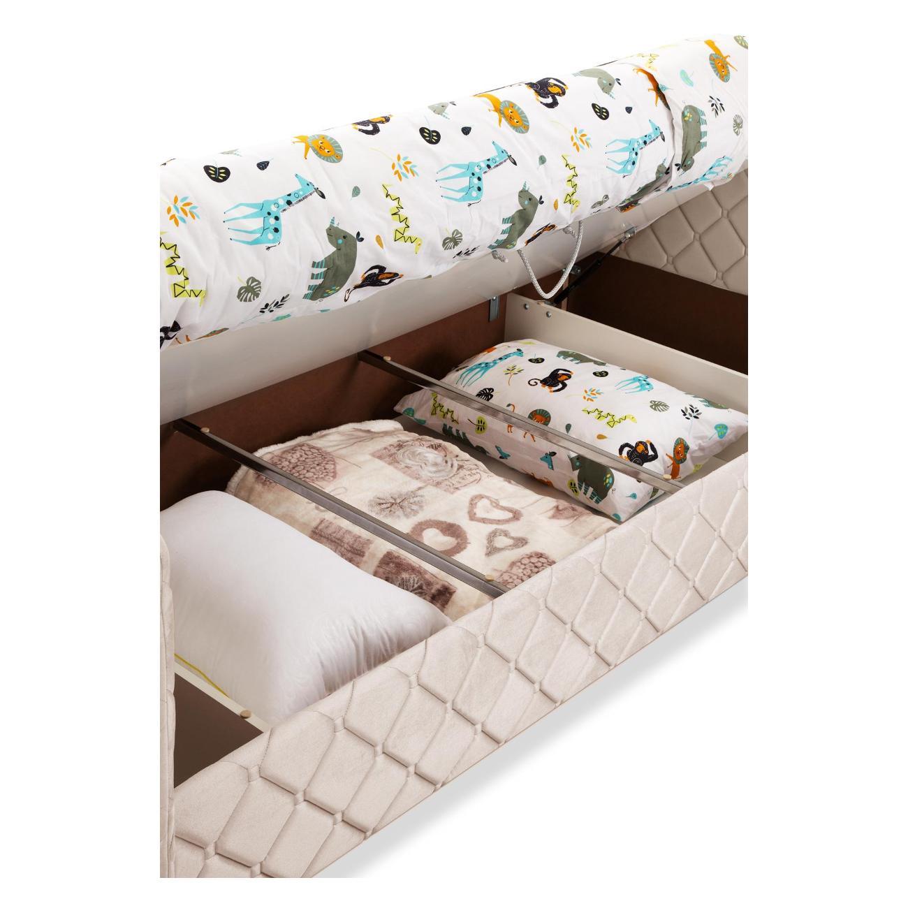 Одноместная кроватка с подъемным механизмом оснащена газлифтом — это удобно для легкого поднятия крышки короба и хранения постельных принадлежностей или других вещей под данным изделием. Дополнительные ящики обеспечивают порядок в комнате и позволяют рационально использовать пространство даже в небольшой спальне. Наш вариант гармонично впишется в любой интерьер благодаря универсальному оформлению, будь то лофт или модерн.